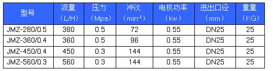 JMZ系列隔膜式計量泵技術(shù)參數(shù):