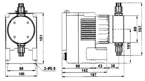 型號 | 流量 L/H | 壓力 Bar | 沖程頻率 次/分鐘 | 功率 W | 進出口徑 mm |