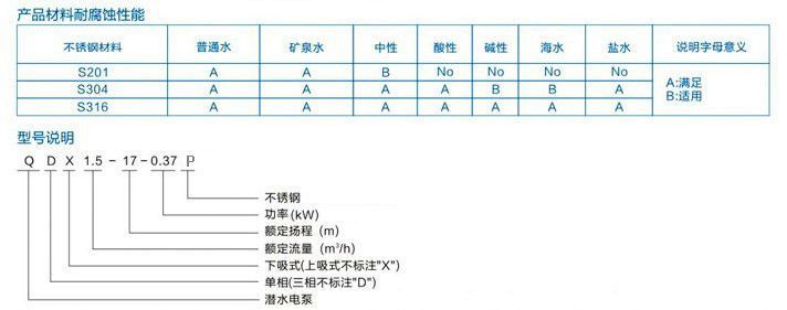 Q(D)X-S 全不銹鋼小型潛水電泵使用條件: