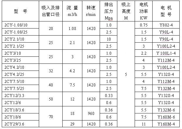 2cy齒輪式輸油泵性能參數(shù):