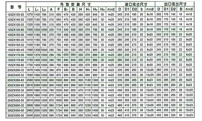 65ZX25-32 | 25 | 6.9 | 32 | 6 | 1.5 | 2900 | 5.5 |